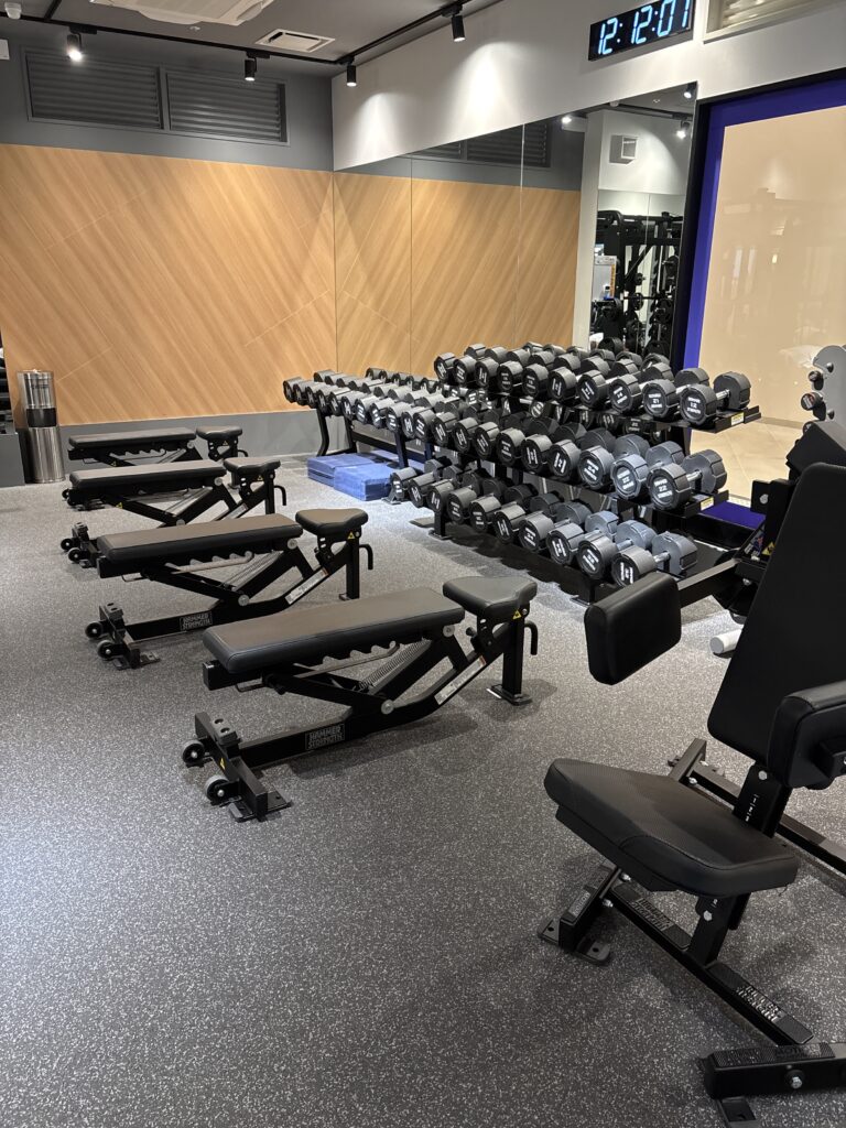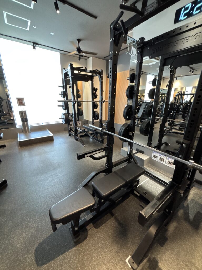 ベンチ台の間隔が若干狭いのが気になりましたが、総じてフリーウェイトエリア最高ですね。
