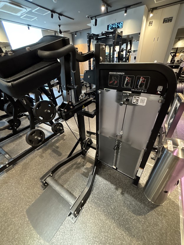 ふくらはぎを鍛える珍しいカーフマシンもありました。